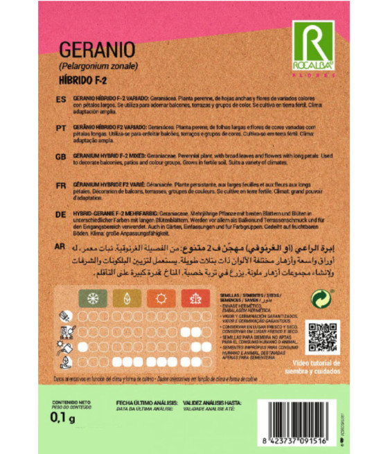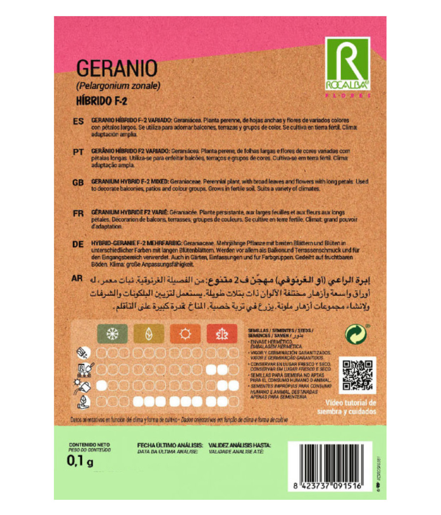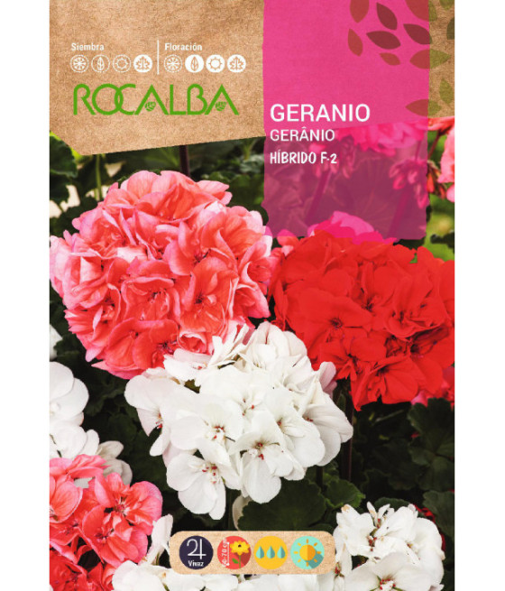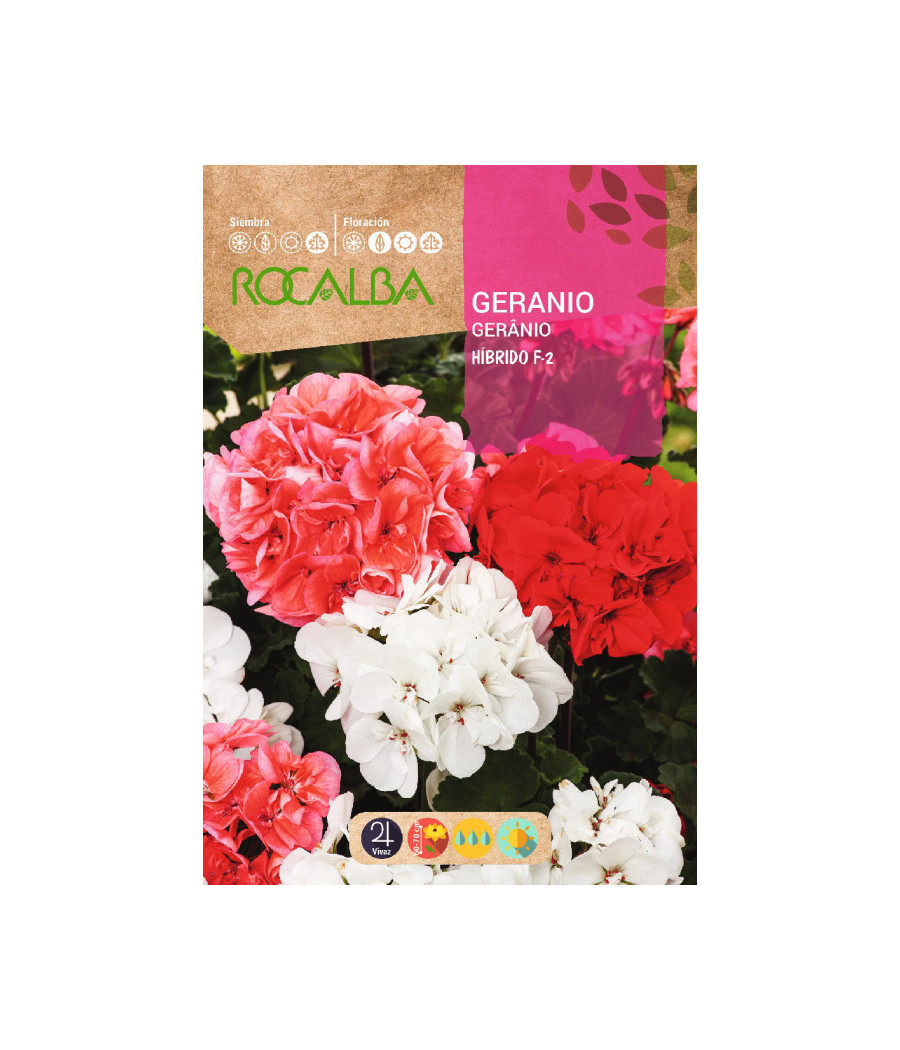 Geraniácea. Planta perene, de folhas largas e flores de cores variadas com pétalas longas. Utiliza-se para enfeitar balcões, terraços e grupos de cores.